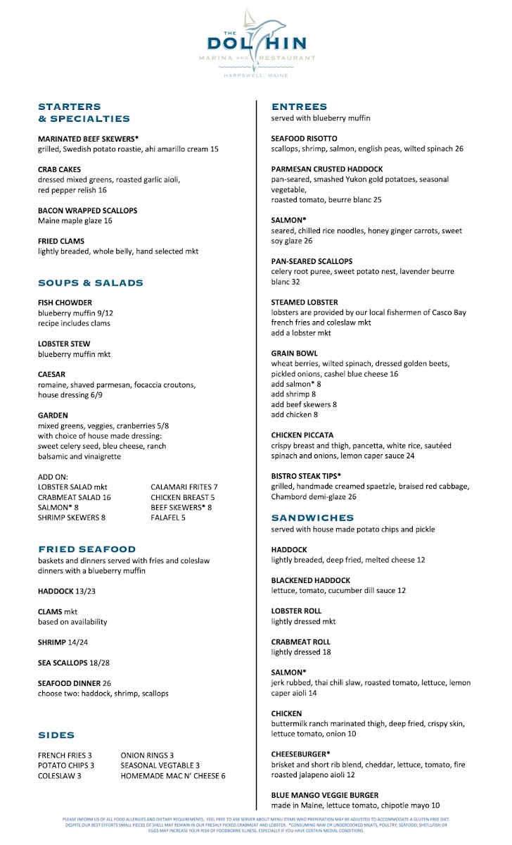 Welcome to Dolphin Marina & Restaurant, a culinary gem nestled at 515 Basin Point Rd in Harpswell, Maine. This waterfront dining experience combines stunning views with an exquisite menu, making it a perfect destination for seafood lovers.